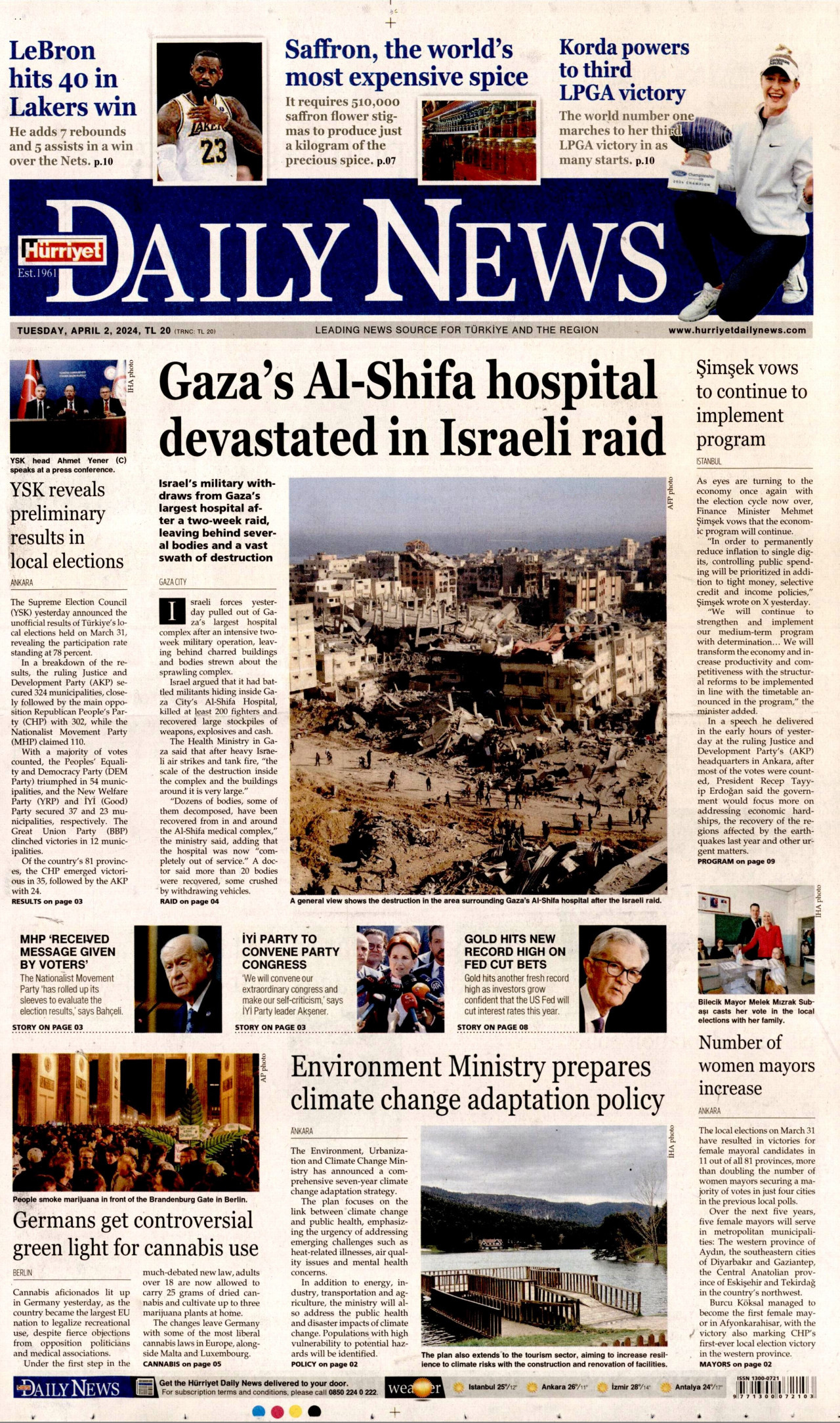HÜRRİYET DAİLY NEWS Gazetesi 02 Nisan 2024, Salı Günü Manşeti