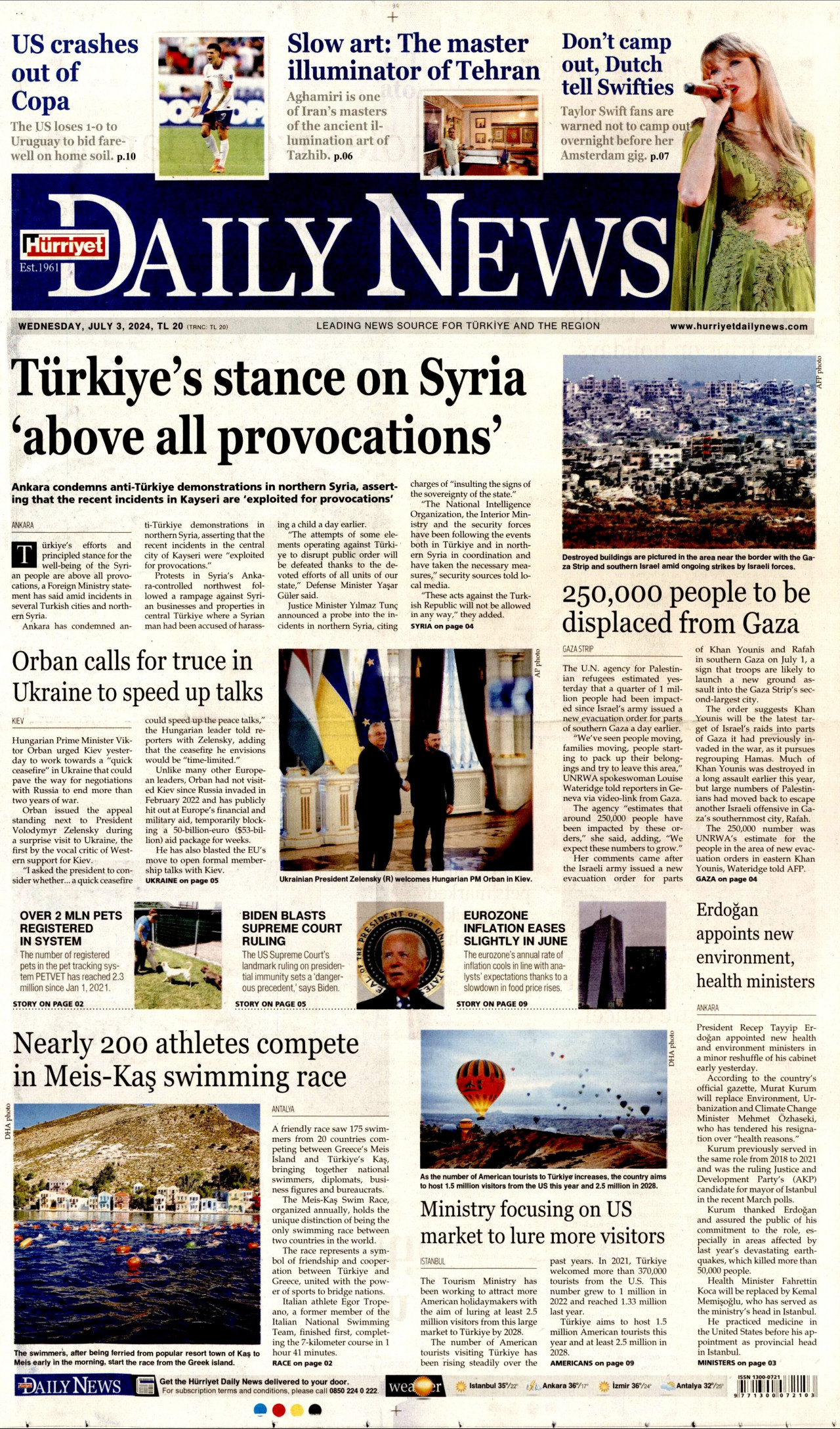 HÜRRİYET DAİLY NEWS Gazetesi 03 Temmuz 2024, Çarşamba Günü Manşeti