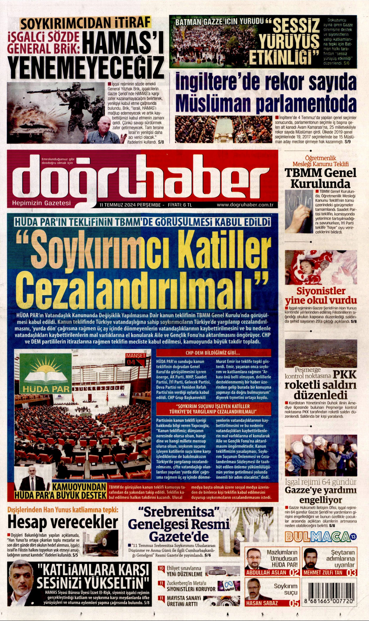DOĞRU HABER Gazetesi 11 Temmuz 2024, Perşembe Günü Manşeti
