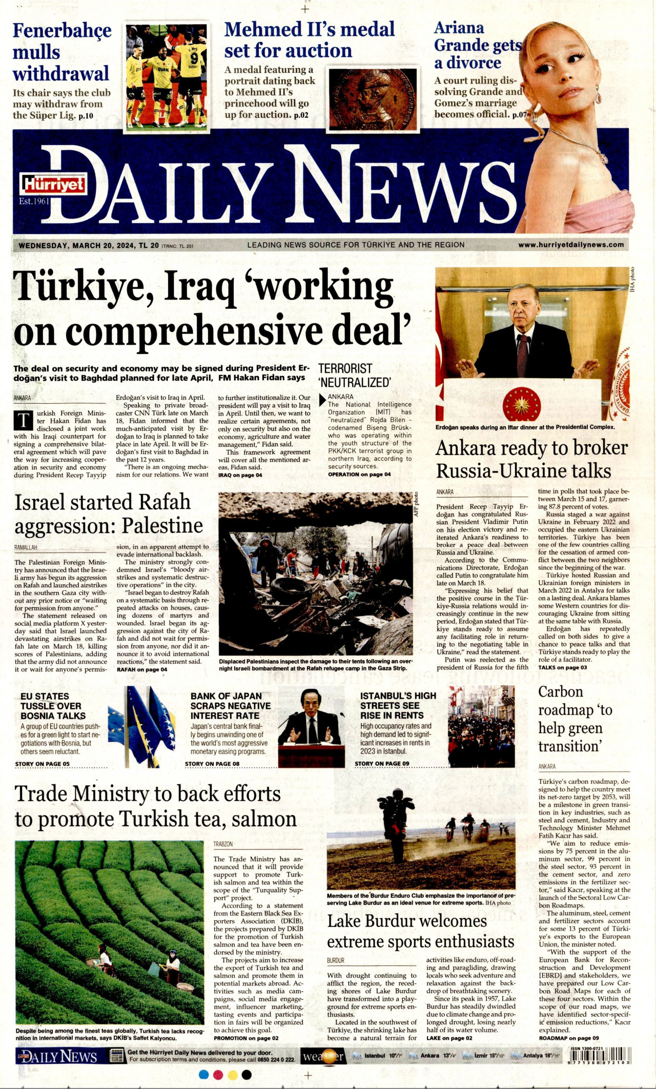 HÜRRİYET DAİLY NEWS Gazetesi 20 Mart 2024, Çarşamba Günü Manşeti