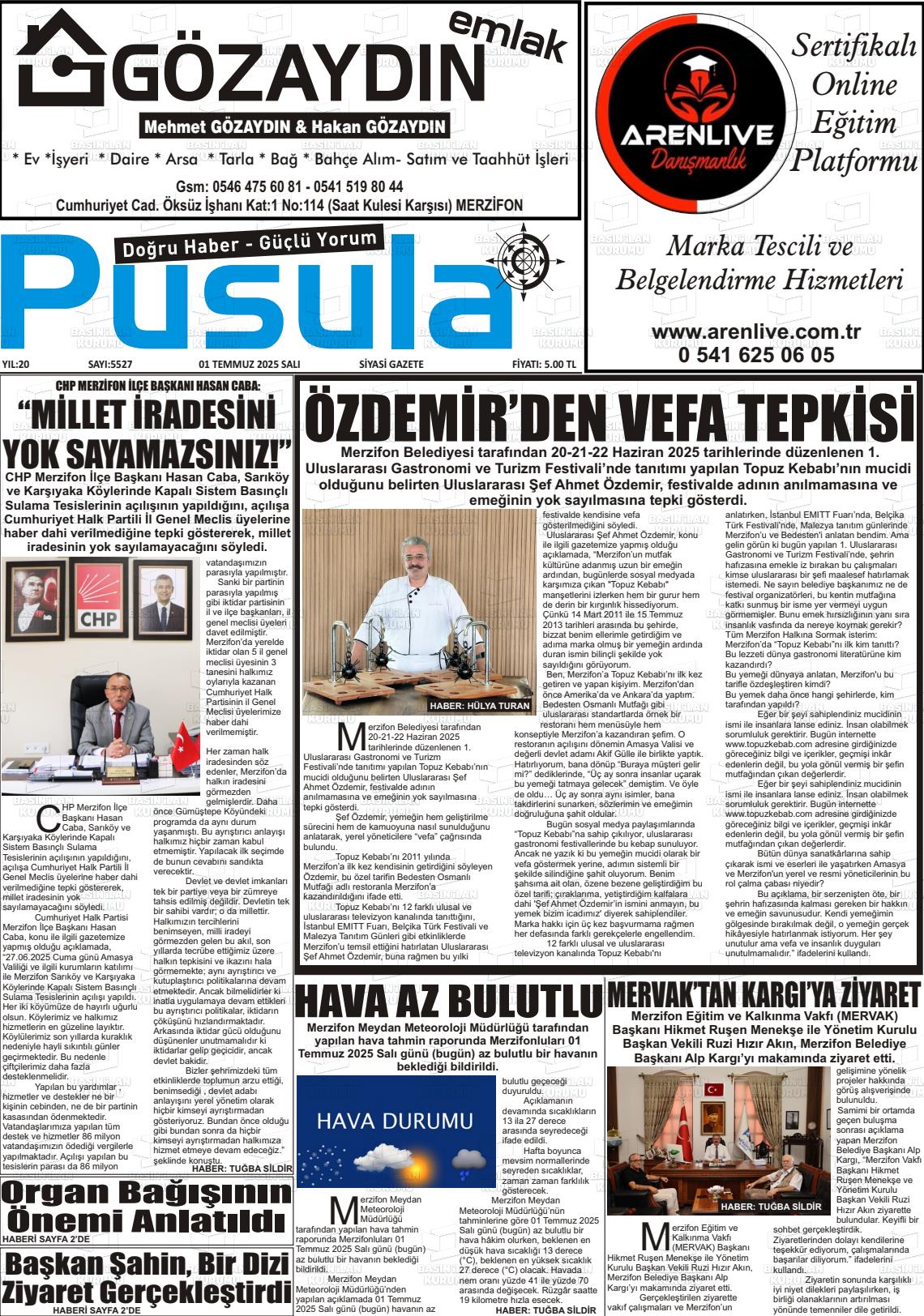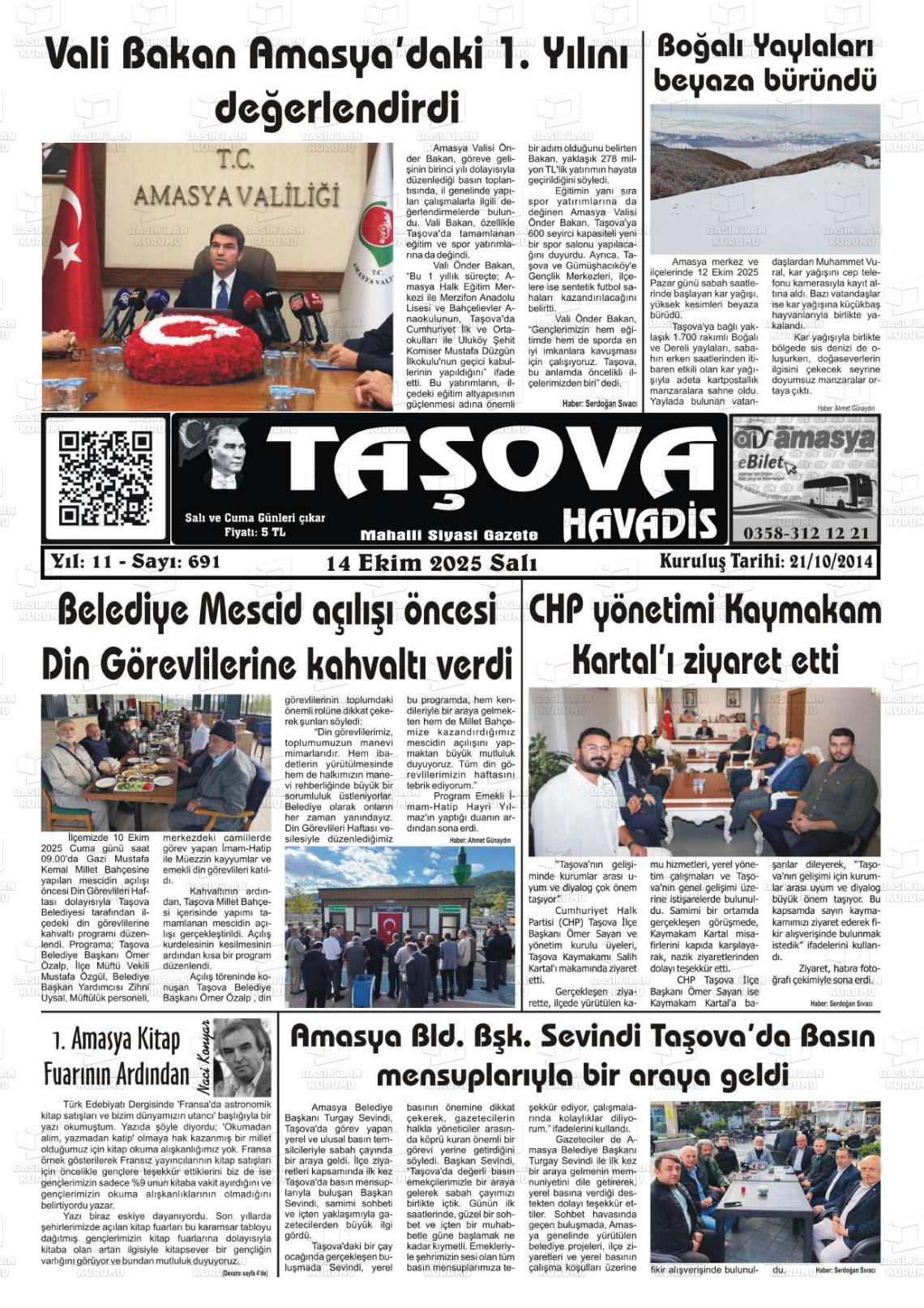 Amasya Yerel Gazeteleri 14 Ekim 2025, Salı Günü Manşeti