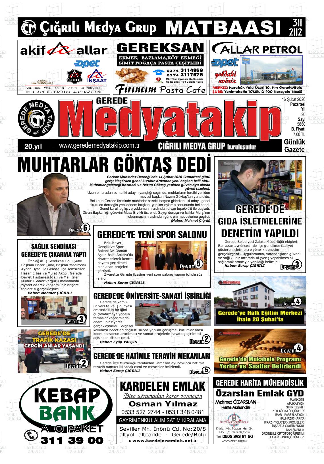 Bolu Yerel Gazeteleri 16 Şubat 2026, Pazartesi Günü Manşeti