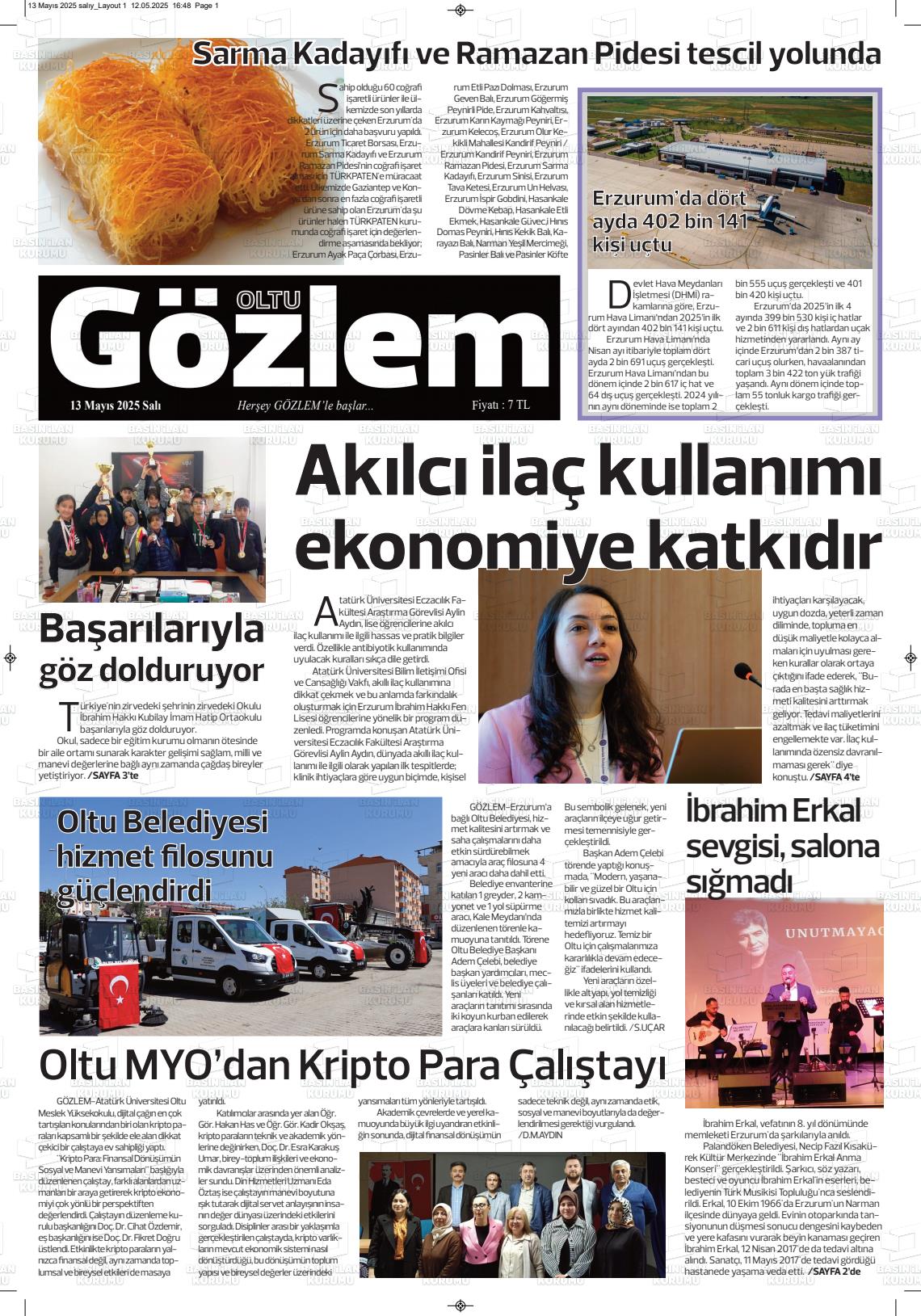 Erzurum Yerel Gazeteleri 09 Aralık 2025, Salı Günü Manşeti