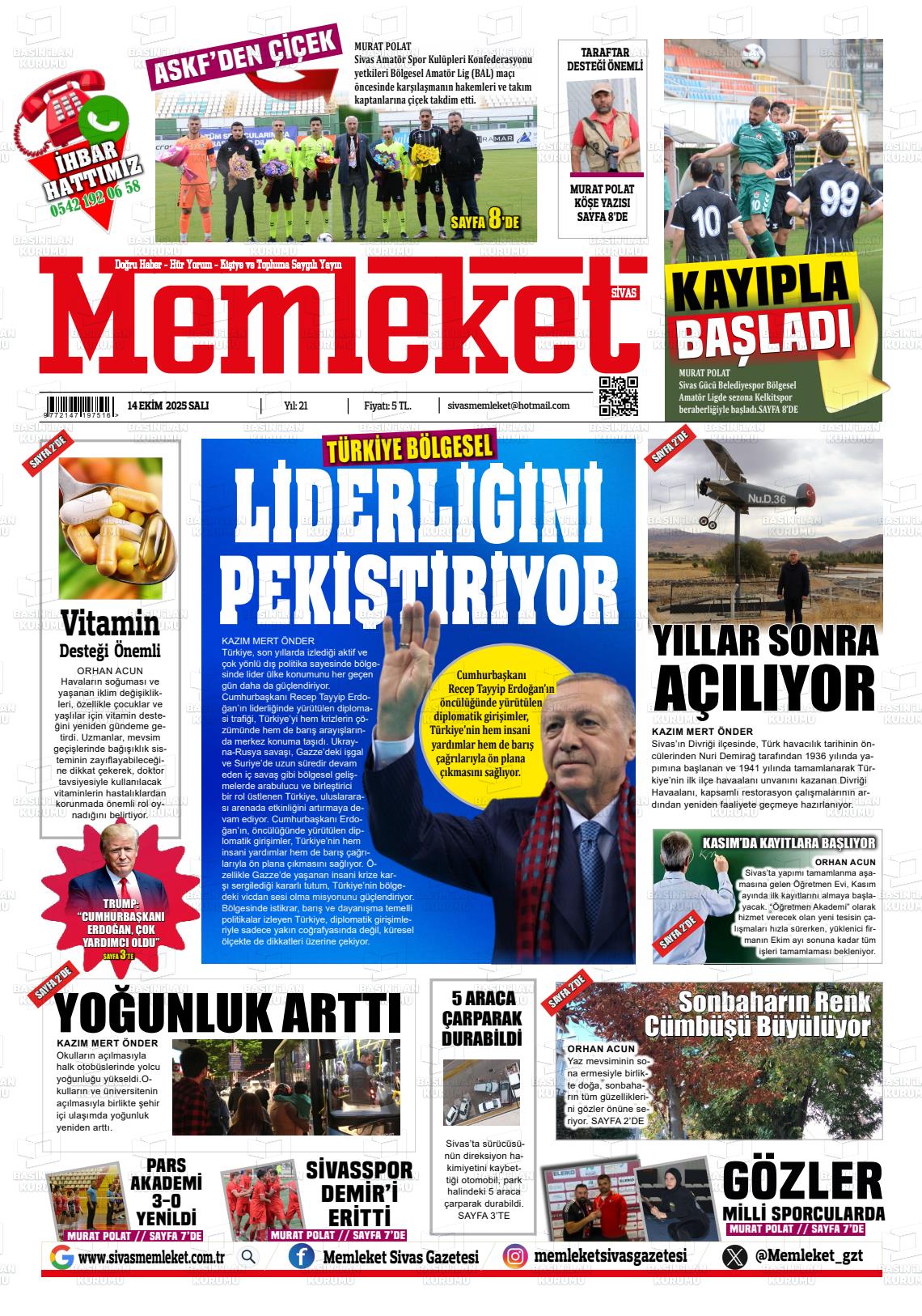 Sİvas Yerel Gazeteleri 08 Aralık 2025, Pazartesi Günü Manşeti