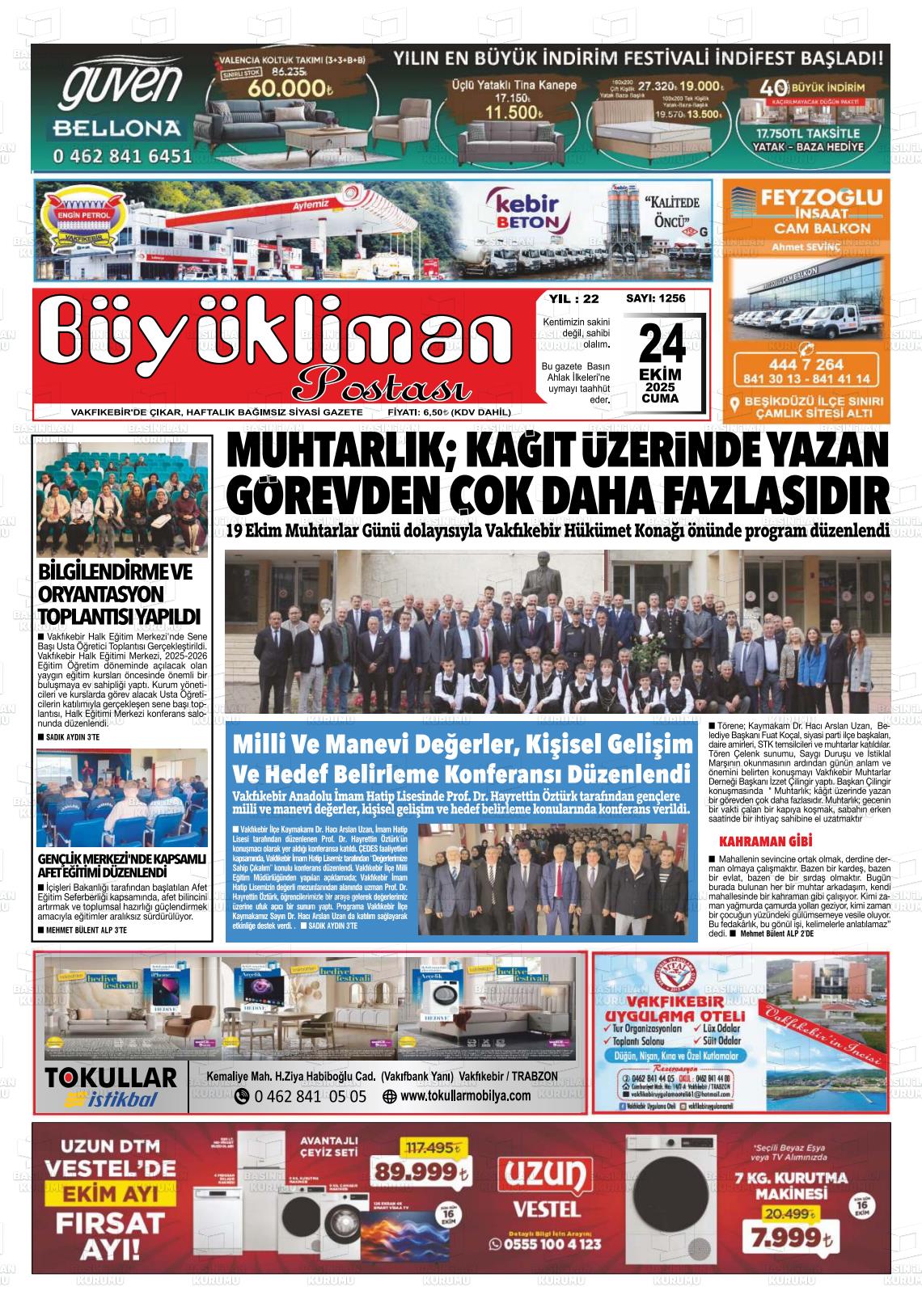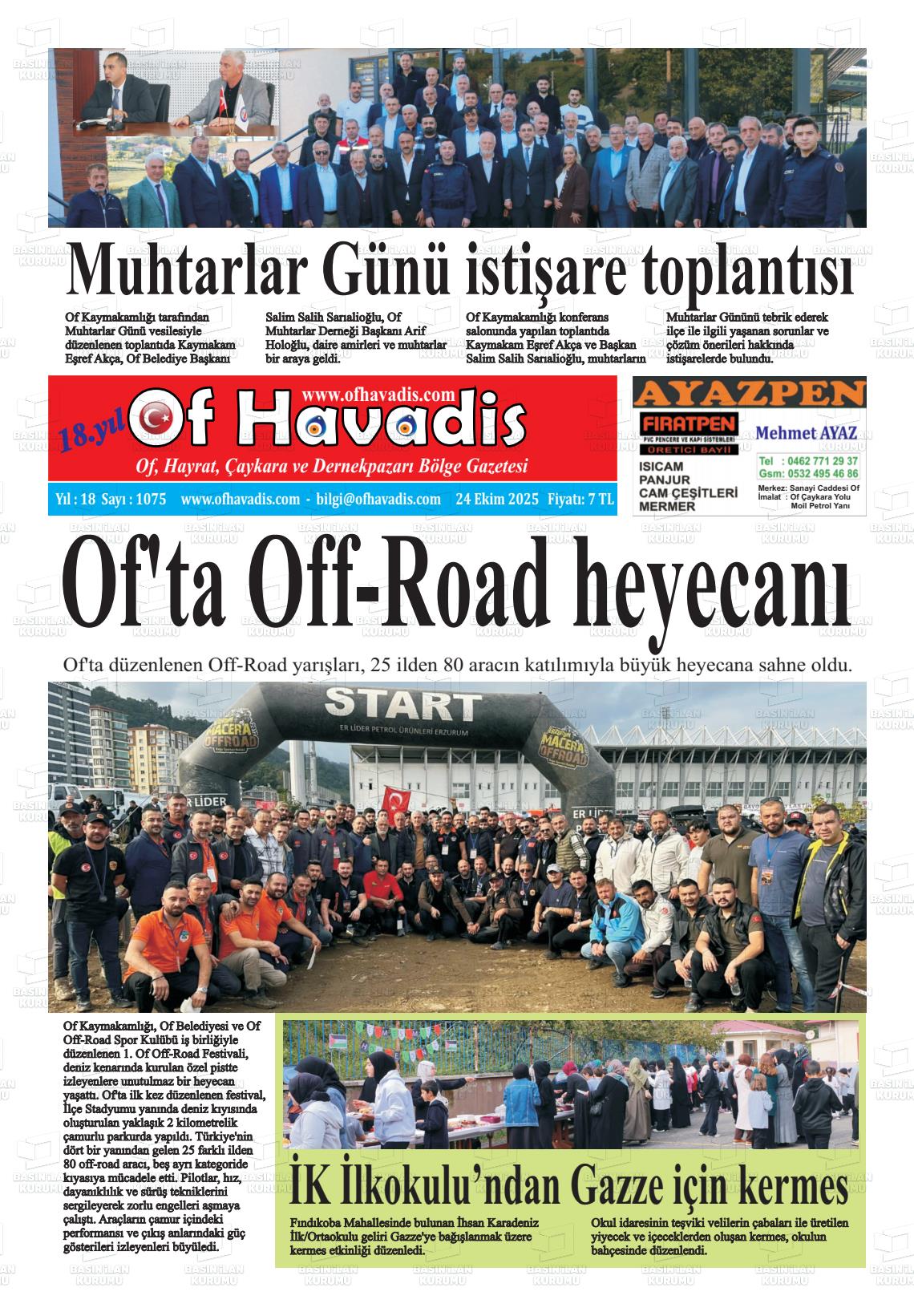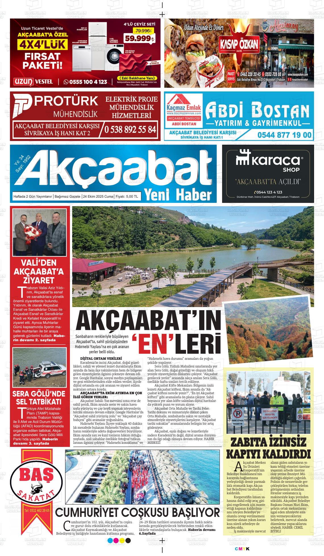Trabzon Yerel Gazeteleri 24 Ekim 2025, Cuma Günü Manşeti