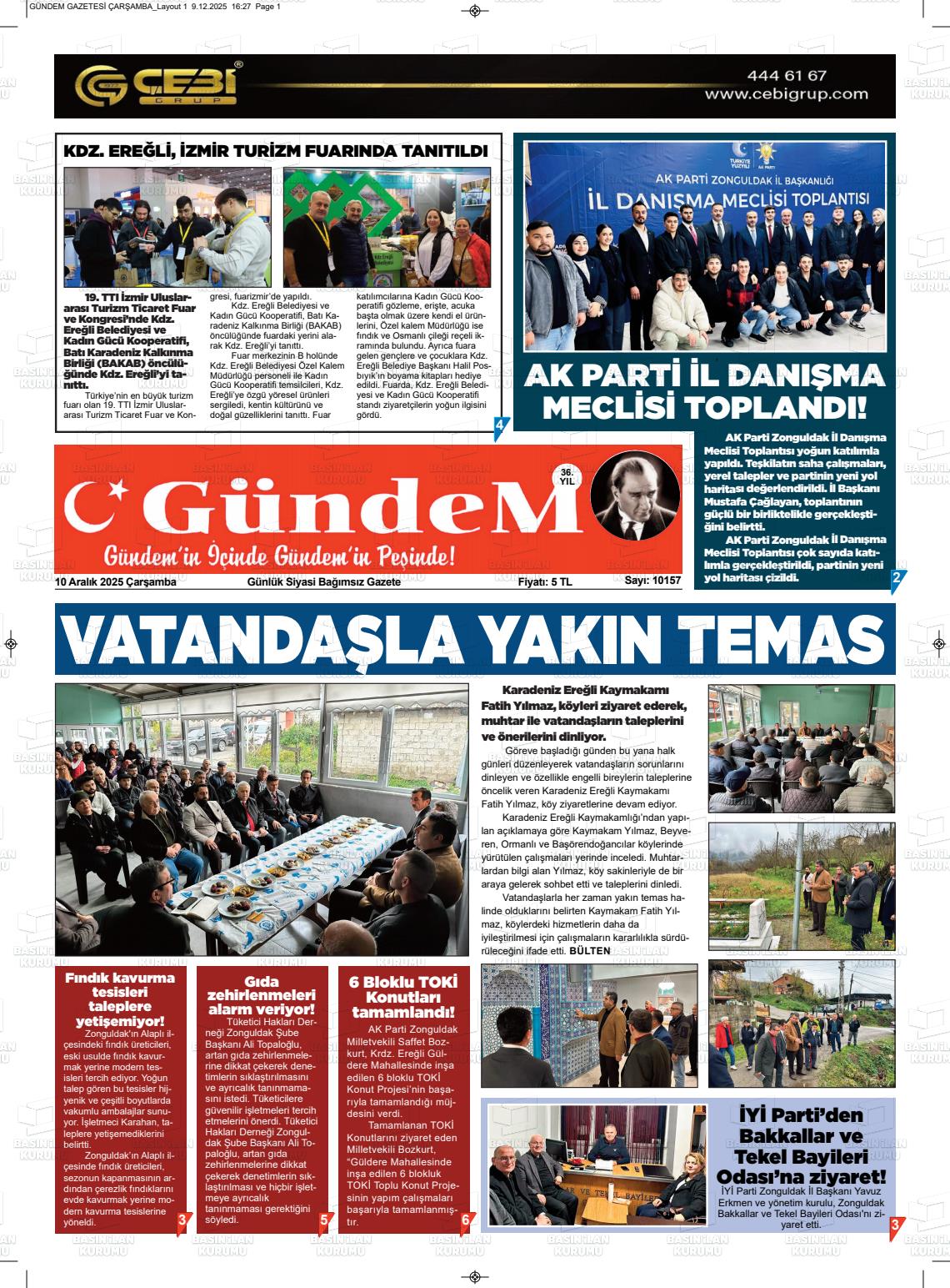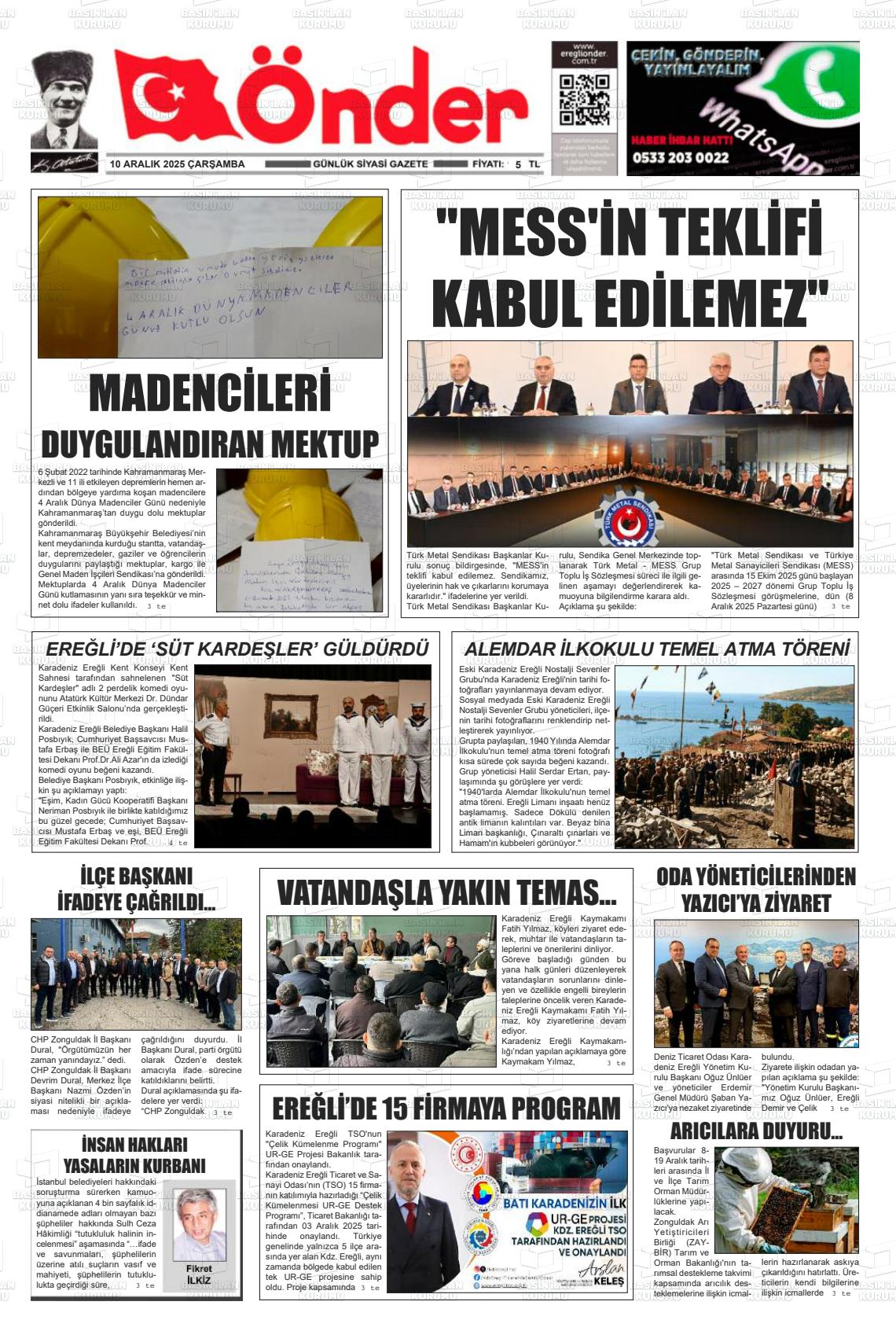 Zonguldak Yerel Gazeteleri 10 Aralık 2025, Çarşamba Günü Manşeti
